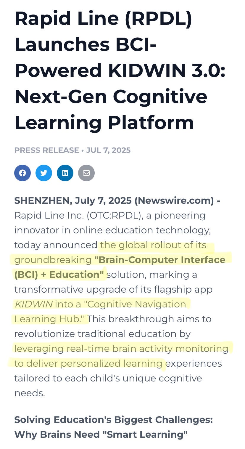 Rapid Line (RPDL) Launches BCI-Powered KIDWIN 3.0: Next-Gen Cognitive Learning Platform